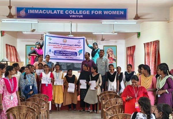 சங்கராபுரம் அடுத்த விரியூஜர் கிராமத்தில் உள்ள இம்மாகுலேட் மகளிர் கல்லுரியில் 100 சதவீத ஓட்டுப்பதிவை வலியுறுத்தி விழிப்புணர்வு நிகழ்ச்சி நடந்தது.